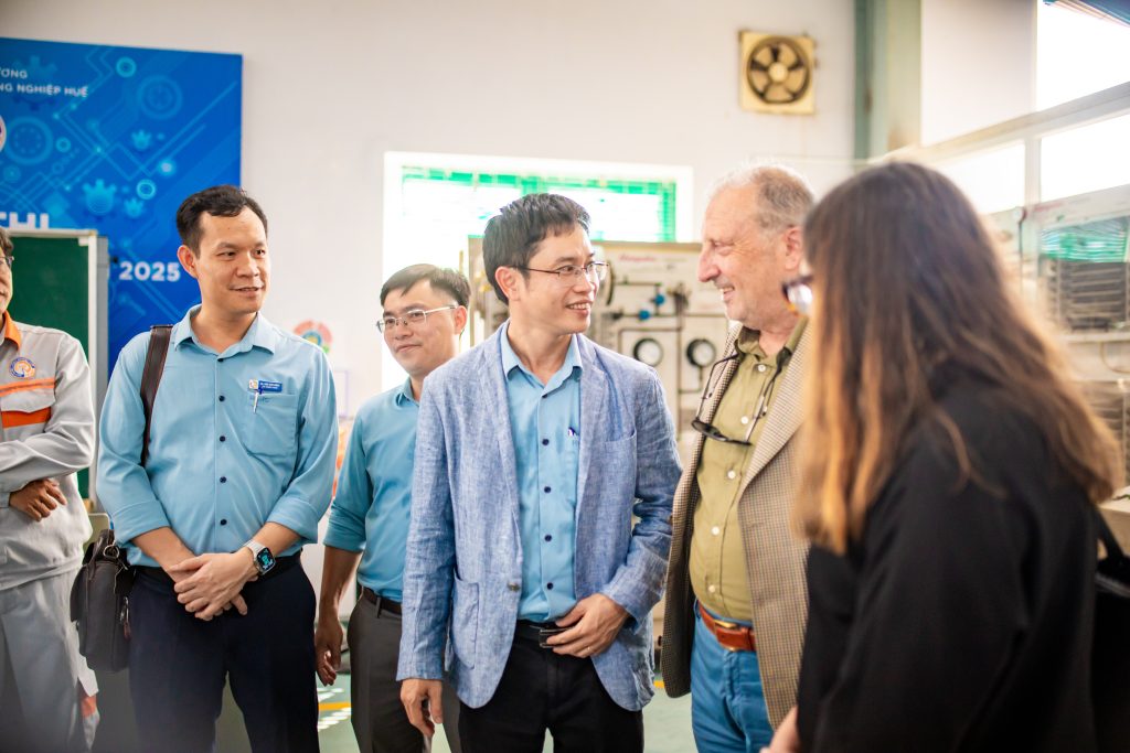 Chiều ngày 02/10/2025, Trường Cao đẳng Công nghiệp Huế (HueIC) hân hoan và vinh dự đón tiếp Phái đoàn Liên minh Châu Âu (EU) và Tổ chức Hợp tác Phát triển Đức (GIZ) đến thăm và làm việc tại Cơ sở 2 của Nhà trường. Đây là sự kiện trọng đại, khẳng định vị thế ngày càng vững chắc của HueIC trong hợp tác quốc tế về giáo dục nghề nghiệp, phát triển nguồn nhân lực xanh và chuyển đổi số.