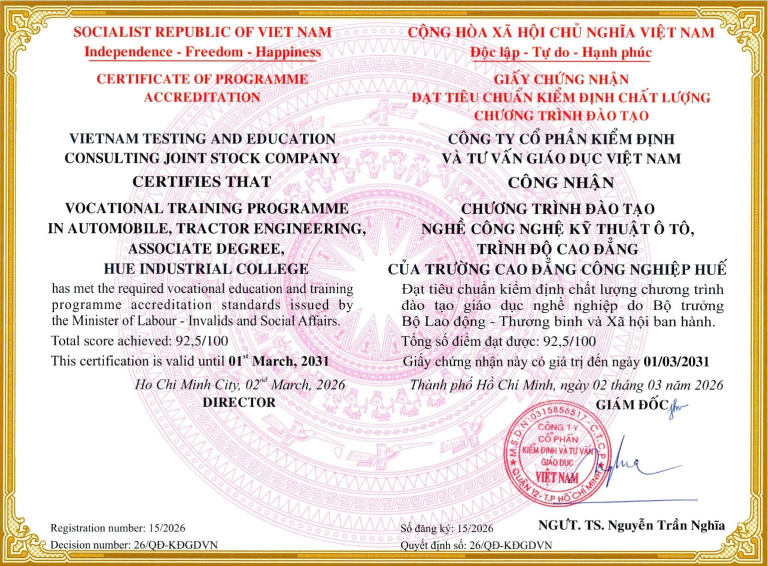 Ngày 02 tháng 03 năm 2026 – Trường Cao đẳng Công nghiệp Huế được công…